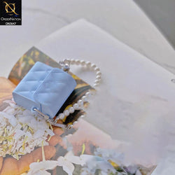 - Apple Airpods 1 / 2 Cover - Light Blue - Luxury Soft Silicone Airpod Case With Pearl Keychain