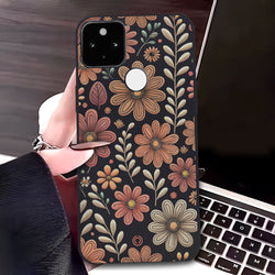 - Google Pixel 5a 5G Cover - Black - D4 - ONation Floral Series - HQ Liquid Silicone Soft Case