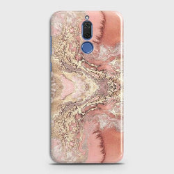 -  Huawei Mate 10 Lite - Trendy Golden & Blue Ocean Marble Printed Hard Case with Life Time Colors Guarantee