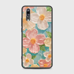 - Huawei P20 Cover - Floral Series - Design 15 - Blue & Green - HQ Ultra Shine Premium Infinity Glass Soft Silicon Borders Case