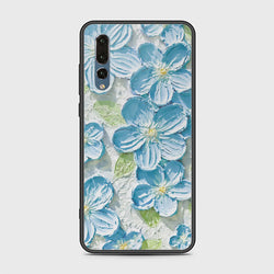 - Huawei P20 Pro Cover - Floral Series - Design 3 - Sky Blue - HQ Ultra Shine Premium Infinity Glass Soft Silicon Borders Case