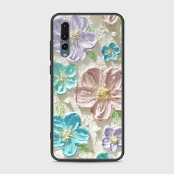 - Huawei P20 Pro Cover - Floral Series - Design 14 - Blue & Purple - HQ Ultra Shine Premium Infinity Glass Soft Silicon Borders Case