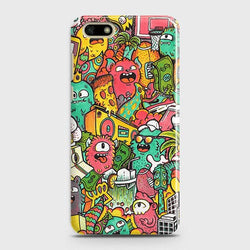 - Huawei Y5 Prime 2018 Cover - Matte Finish - Candy Colors Trendy Sticker Collage Printed Hard Case With Life Time Guarantee