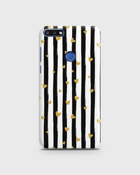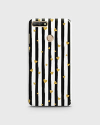 - Huawei Y7 2018 - Trendy Black & White Lining With Golden Hearts Printed Hard Case With Life Time Colors Guarantee