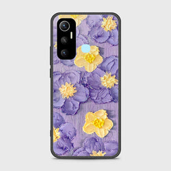 - Infinix Hot 11 Cover - Floral Series - Design 1 - Purple & Aqua - HQ Ultra Shine Premium Infinity Glass Soft Silicon Borders Case