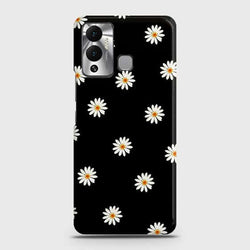 - Infinix Hot 12 Play Cover - White Bloom Flowers with Black Background Printed Hard Case with Life Time Colors Guarantee