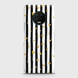 - Infinix Note 7 Cover - Trendy Black & White Lining With Golden Hearts Printed Hard Case with Life Time Colors Guarantee