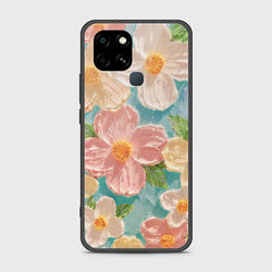- Infinix Smart 6 Cover - Floral Series - Design 16 - Cyan & Pink - HQ Ultra Shine Premium Infinity Glass Soft Silicon Borders Case