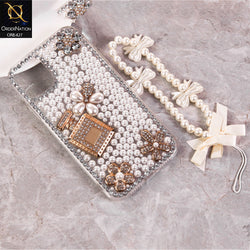 - iPhone 11 Pro Cover - White - Luxury Women Design Diamond And Heart Pearl Case