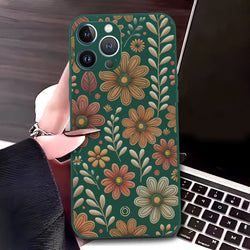 - iPhone 13 Pro Cover - Dark Green - D2 - ONation Floral Series - HQ Liquid Silicone Soft Case
