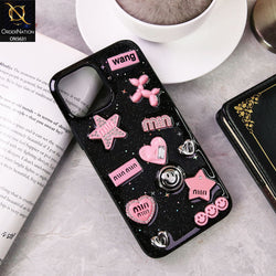- iPhone 13 Pro Max Cover - Design 1 - 3D Cartoon Pink Love Heart Little Star Glossy Surface Case