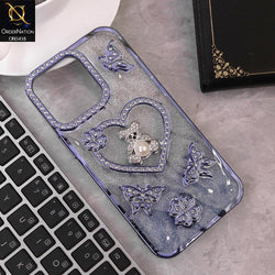 - IPhone 14 Pro Max Cover - Blue - Luxury Shiny Diamond 3D Butterfly Glitter with Love Heart Case
