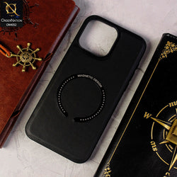 - iPhone 14 Pro Max Cover - Black - Leather Texture Silicon Magnetic Design Soft Case