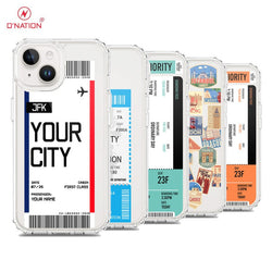 - iPhone 15 Cover - Personalised Boarding Pass Ticket Series - 5 Designs - Clear Phone Case - Soft Silicon Borders(25)
