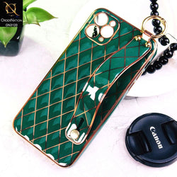 Apple Airtag- iPhone 11 Pro Max Cover - Green - Luxury Gold Plating Diamond Cut Wristband Holder Soft Shiny Silicone Case(9)