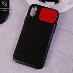 - iPhone XS / X - Red - New Style Dotted Texture Camera Slider Back Soft Case