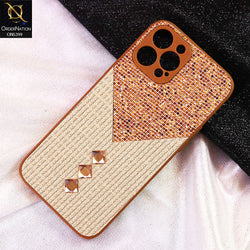 - iPhone 14 Pro Max Cover - Brown - Luxury 3D Woven Pattern Shiny Soft Case With Camera Protection