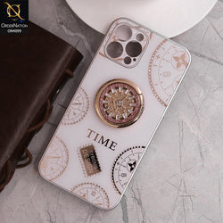 Apple Airtag- iPhone 12 Pro Cover - White - Bling Shiny Back Shell Soft Round Borders Camera Protection Case With Ring Holder