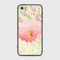 - iPhone SE Cover - Floral Series - Design 7 - Pink & Yellow - HQ Ultra Shine Premium Infinity Glass Soft Silicon Borders Case