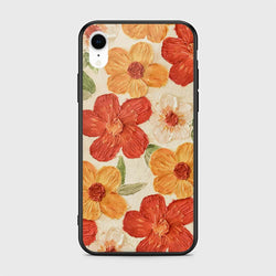 - iPhone XR Cover - Floral Series - Design 6 - Red & Orange - HQ Ultra Shine Premium Infinity Glass Soft Silicon Borders Case