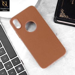- iPhone XS / X Cover - Brown - New Dotted Leather Texture Soft Borders Case