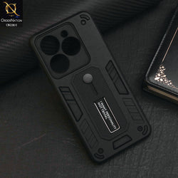 - Itel P55 4G Cover - Black - Hybrid Stylish Slide Finger Grip With Metal Kickstand Soft Borders Case