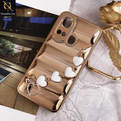- Itel A49 Play Cover - Golden - Cute Trendy Color Electroplating Stitched Coushion Style Soft Case with Loce Heart Chain Holder
