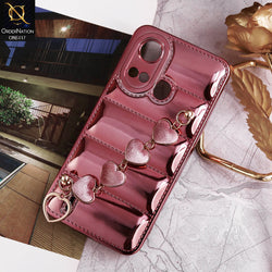 - Itel A49 Play Cover - Rose Gold - Cute Trendy Color Electroplating Stitched Coushion Style Soft Case with Loce Heart Chain Holder