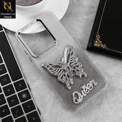 - Itel P55 4G Cover - White - Elegant Fancy 3D Rhinestomes Thin Protective Soft Borders Case