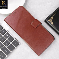 - itel S25 Cover - Brown - Premium PU Leather Magnetic Flip Book Card Slots Wallet Soft Case