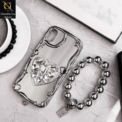 - iPhone XS / X Cover - Silver - 3D Electroplated Crystal Heart Shiny Mirror Case With Wrist Holder