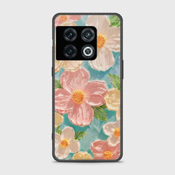 - OnePlus 10 Pro Cover - Floral Series - Design 16 - Cyan & Pink - HQ Ultra Shine Premium Infinity Glass Soft Silicon Borders Case