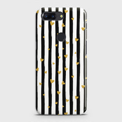 - OnePlus 5T Cover - Trendy Black & White Lining With Golden Hearts Printed Hard Case with Life Time Colors Guarantee