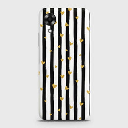 -  Oppo A17k Cover - Trendy Black & White Lining With Golden Hearts Printed Hard Case with Life Time Colors Guarantee