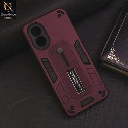- Oppo A18 Cover - Burgundy - Hybrid Stylish Slide Finger Grip With Metal Kickstand Soft Borders Case