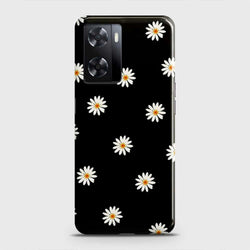 - Oppo A57 4G 2022 Cover - White Bloom Flowers with Black Background Printed Hard Case with Life Time Colors Guarantee