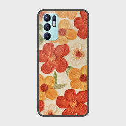 - Oppo Reno 6 Cover - Floral Series - Design 6 - Red & Orange - HQ Ultra Shine Premium Infinity Glass Soft Silicon Borders Case