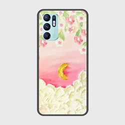 - Oppo Reno 6 Cover - Floral Series - Design 5 - Pink & White - HQ Ultra Shine Premium Infinity Glass Soft Silicon Borders Case