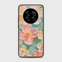 - Realme 12 Plus Cover - Floral Series - Design 16 - Cyan & Pink - HQ Ultra Shine Premium Infinity Glass Soft Silicon Borders Case