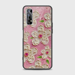 - Realme 7 Cover - Floral Series - Design 5 - Pink & White - HQ Premium Shine Durable Shatterproof Case
