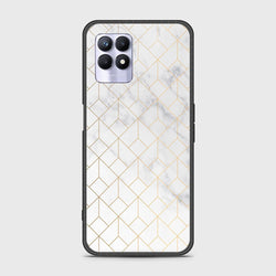 - Realme 8i Cover - White Marble Series - HQ Ultra Shine Premium Infinity Glass Soft Silicon Borders Case