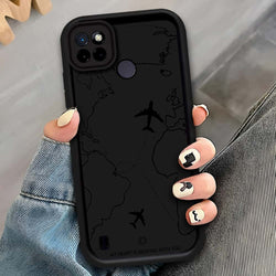 - Realme C25Y - Black - Airplane Route Design - ONation Step Up Series - HQ Liquid Silicone Soft Case