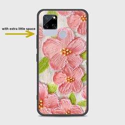 - Realme C12 Cover - Floral Series - Design 9 - Pink & Green - HQ Ultra Shine Premium Infinity Glass Soft Silicon Borders Case