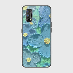 Realme V23 Realme V25- Realme 7 Pro Cover - Floral Series - Design 1 - Purple & Aqua - HQ Ultra Shine Premium Infinity Glass Soft Silicon Borders Case