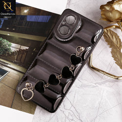 Realme V23 Realme V25- Realme C67 Cover - Black - Cute Trendy Color Electroplating Stitched Coushion Style Soft Case with Loce Heart Chain Holder