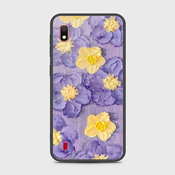 - Samsung Galaxy A10 Cover - Floral Series - Design 4 - Purple & White - HQ Ultra Shine Premium Infinity Glass Soft Silicon Borders Case