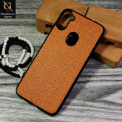 - Samsung Galaxy A11 Cover - Mustard - New Jeans Fabric Texture Leather Soft Case
