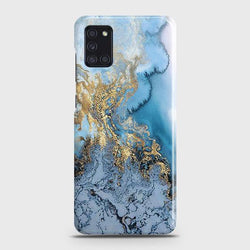 - Samsung Galaxy A31 Cover - Trendy Golden & Blue Ocean Marble Printed Hard Case with Life Time Colors Guarantee
