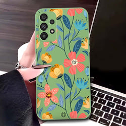 - Samsung Galaxy A33 5G Cover - Light Green - D2 - ONation Floral Series - HQ Liquid Silicone Soft Case