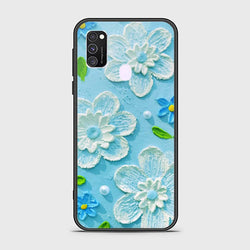 - Samsung Galaxy M30s Cover - Floral Series - Design 3 - Sky Blue - HQ Ultra Shine Premium Infinity Glass Soft Silicon Borders Case